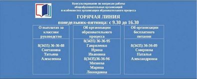 Для консультирования по вопросам работы общеобразовательных организаций и особенностях организации образовательного процесса администрацией МБОУ СОШ №3 и управлением образования Администрации города Нижний Тагил созданы горячие линии:
