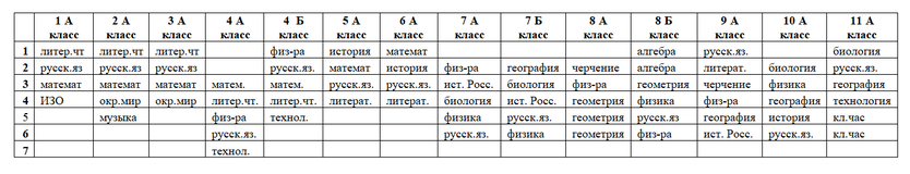 8А (2 гардероб, в понедельник, вторник, четверг, пятницу), 8Б (2 гардероб, в среду, четверг, пятницу), 10 А (2 гардероб, в среду) |