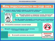 Основные рекомендации и меры предосторожности при угрозе схода снега с крыш зданий: